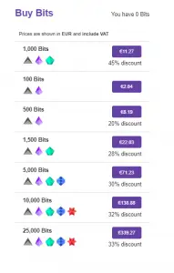 L'element de pagament de Twitch ofereix als usuaris accés a funcions addicionals , i també és un mitjà per donar suport directament a un streamer. Twitch també utilitza una moneda virtual anomenada 'Bits'. Els usuaris poden comprar Bits que després s'utilitzen per animar a un streamer. 'Aclamar' és una manera de celebrar i donar suport a un streamer.