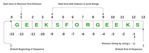 # Slicing of a Tuple # Slicing of a Tuple # with Numbers Tuple1 = tuple('GEEKSFORGEEKS') # Removing First element print('Removal of First Element: ') print(Tuple1[1:]) # Reversing the Tuple print('